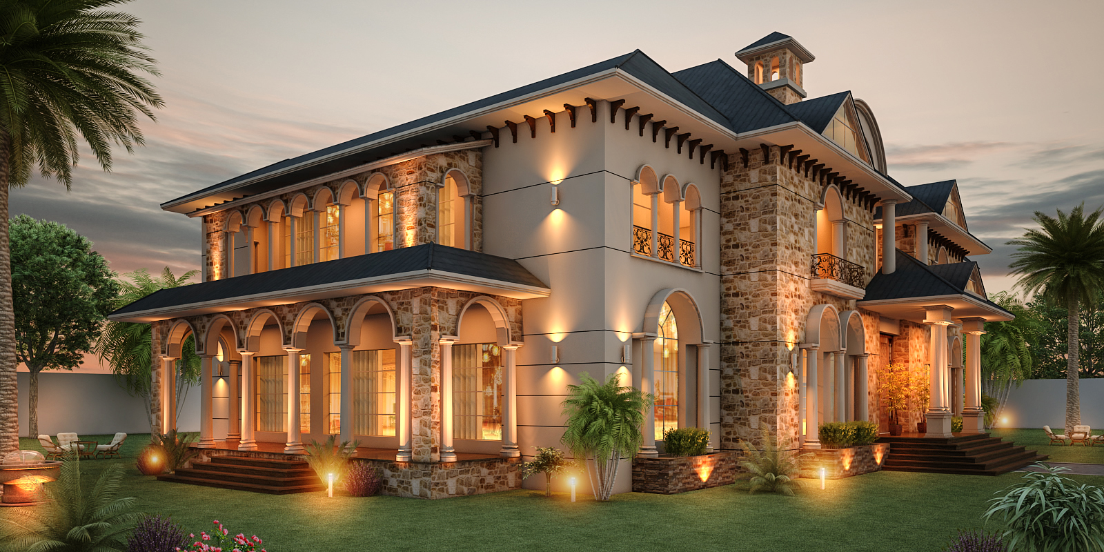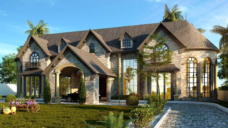 The Farm House of Mr. Ashir, designed by Maveros Engineering Consultants, exudes classic charm with its rustic stone façade and elegant gabled roofs. Featuring large arched windows and finely crafted architectural details, the design seamlessly blends traditional aesthetics with modern functionality. Surrounded by lush greenery and complemented by a cobblestone driveway, this farmhouse provides a serene and luxurious retreat. Maveros' meticulous attention to detail ensures a perfect balance between timeless beauty and contemporary comfort.